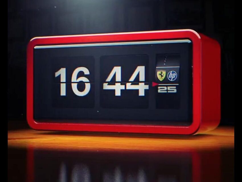 Ferrari hesaplarından paylaşılan videoda yer alan saat, 16:43’ü gösterirken, 16:43’ün 55. saniyesinden (takımdan ayrılan Carlos Sainz’ın numarası) itibaren ses değişti ve dakika bölümü 44’e yani Hamilton’ın numarasına çevrildi. Böylece ekrana 16:44.25 geldi.