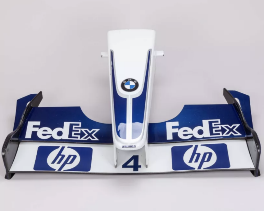 2003 sezonu, Williams’ın günümüzdeki en son şampiyonluk mücadelesini verdiği yıl olarak öne çıkıyor. Michael Schumacher ve Ferrari’nin hakimiyet döneminin ortasında, Williams-BMW FW25 aracı, sezonun en büyük tehditlerinden biri haline gelmişti. Ralf Schumacher’in üst üste kazandığı yarışlar aracın potansiyelini ortaya koyarken, takım arkadaşı Juan Pablo Montoya ise son üç yarışa girilirken lider Schumacher’in yalnızca bir puan gerisindeydi. Ancak lastik kurallarında yapılan sıkılaştırma, Williams’ın tedarikçisi Michelin’i Ferrari’nin ortağı Bridgestone’a kıyasla daha fazla etkiledi ve Indianapolis’te alınan ceza ile Montoya’nın şampiyonluk şansı son buldu. Williams’ın modern tarihinde ikonik bir sezon olan 2003’ü hatırlamak isteyenler için, o sezona ait ön kanat ve burun bölümü özel bir koleksiyon parçası olarak açık artırmada yer alıyor.