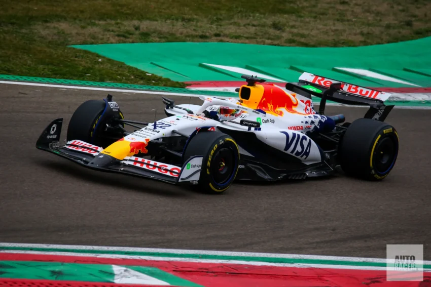 Imola’da pistte olan tek araç VCARB 02 değildi. Koyu renkli bir diğer tek koltuklu araç da turluyordu. Bu araç Racing Bulls’a değil, AlphaTauri’ye aitti: AT04.