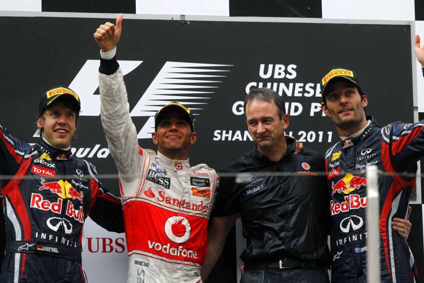 McLaren’dan Lewis Hamilton, 2011 Çin Grand Prix’sinde üçüncü sıradan start alarak zaferi kazandı ve bu yarışı birden fazla kez kazanan ilk pilot olarak Formula 1 tarihine geçti. Pole pozisyonundaki Sebastian Vettel, Red Bull Racing ile ikinci olurken, takım arkadaşı Mark Webber, 18. sıradan başlayarak etkileyici bir geri dönüşle üçüncü sırayı aldı.