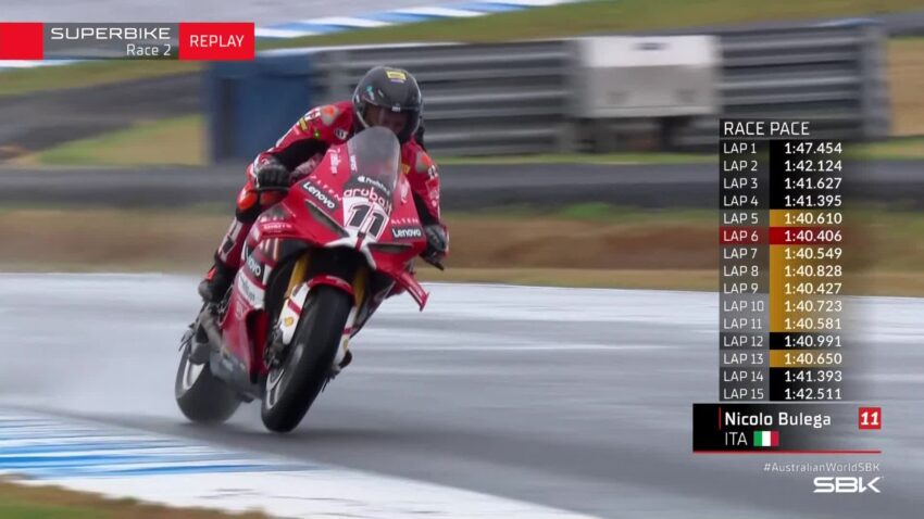 2026 Dünya Superbike Şampiyonası’nın Avustralya ayağında Phillip Island Pisti’nde gerçekleştirilen ikinci tam yarışta zafer Nicolo Bulega’nın oldu. Tamamen ıslak zeminde koşulan yarışta Bulega, kuru zemindeki üstün performansını bu kez yağmur altında da sürdürerek, baştan sona lider götürdüğü mücadeleyi 11 saniyelik farkla kazanmayı başardı.